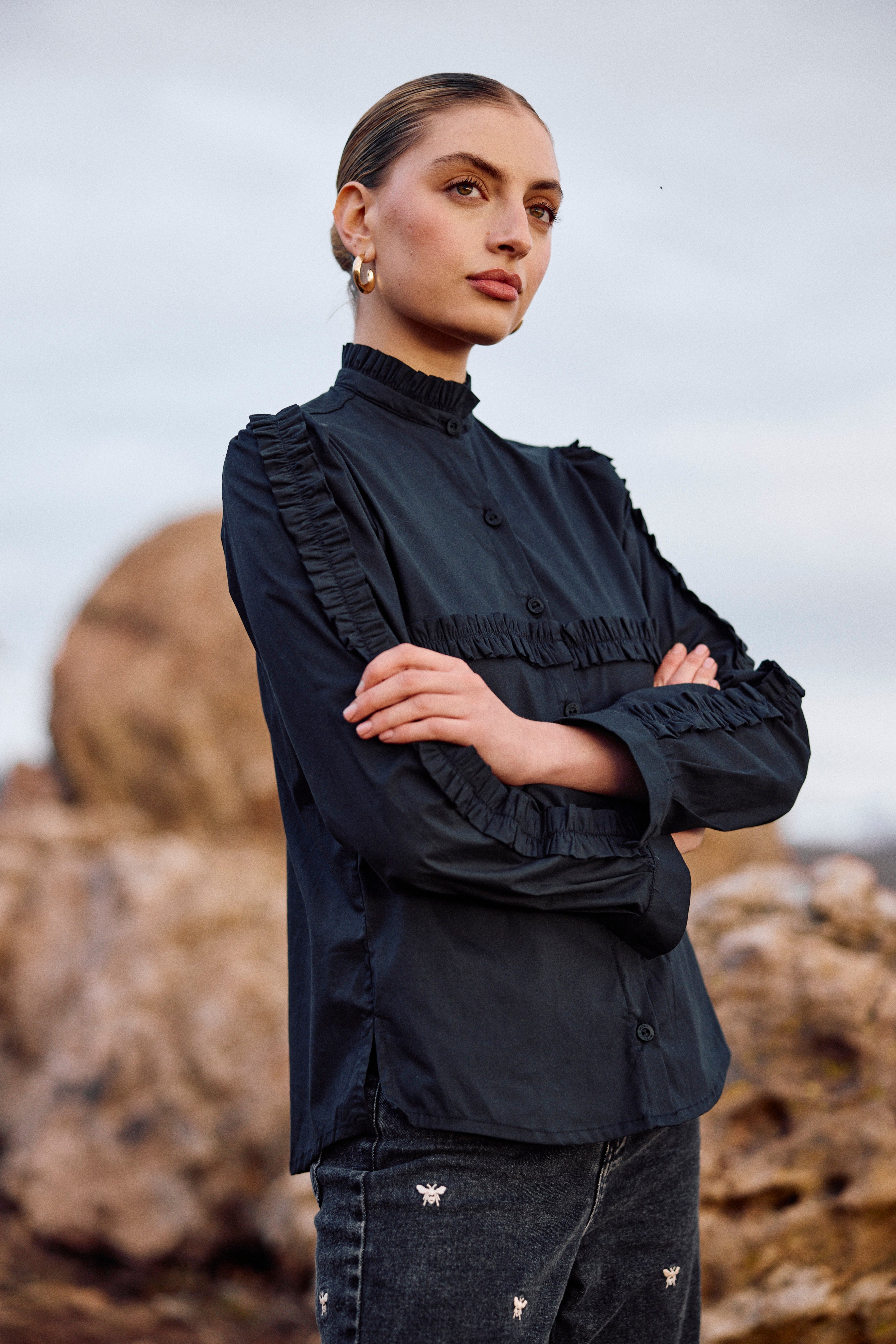 Sobrecamisa Zenna negro bordado